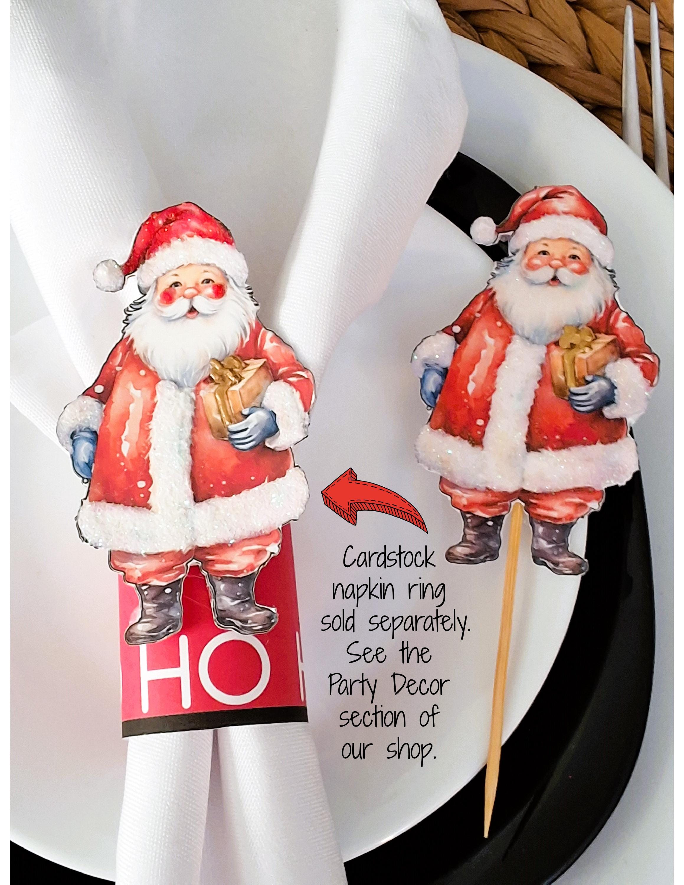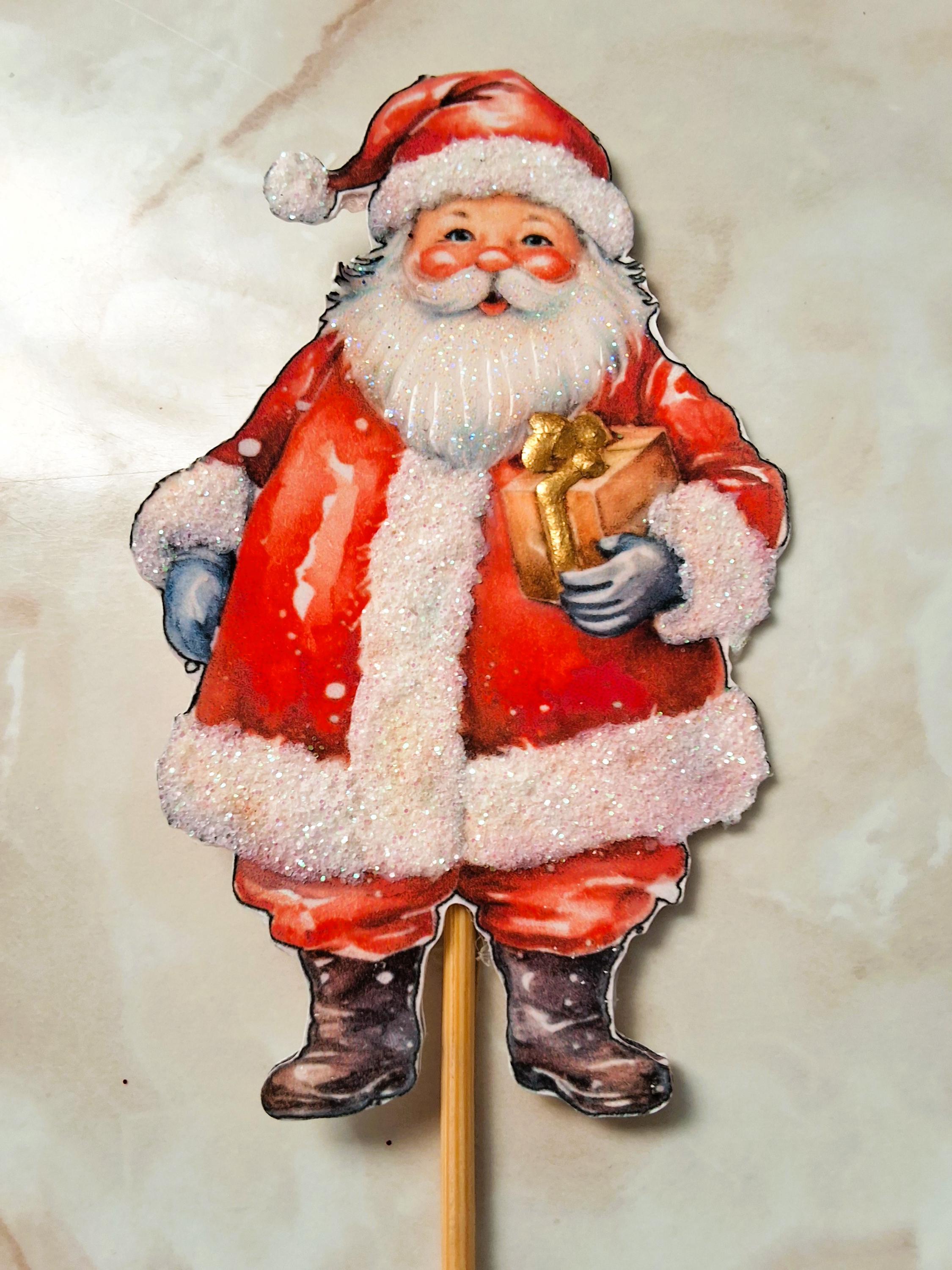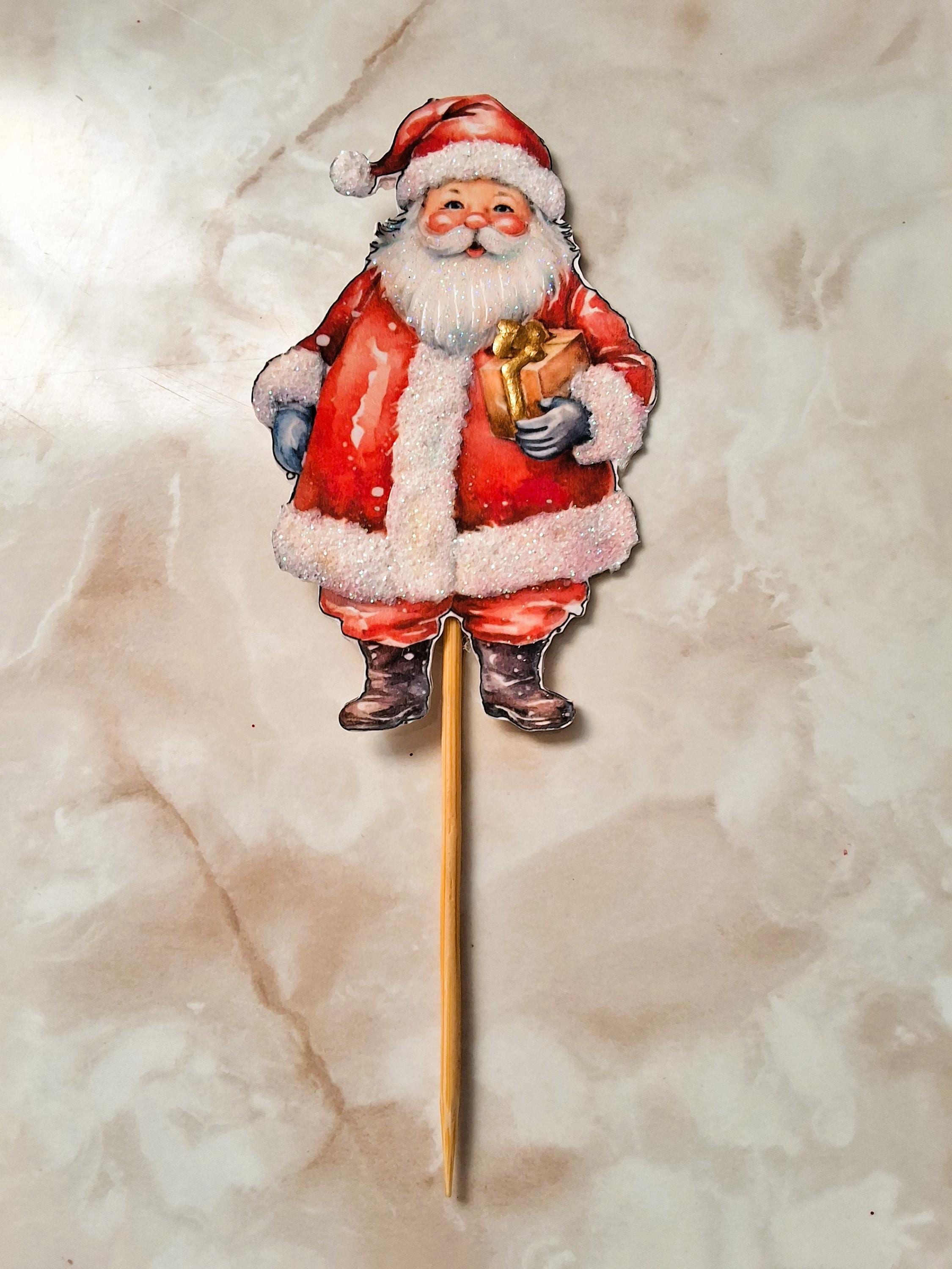 Christmas Watercolor Vintage Glittered Santa Claus Cupcake Toppers/Picks