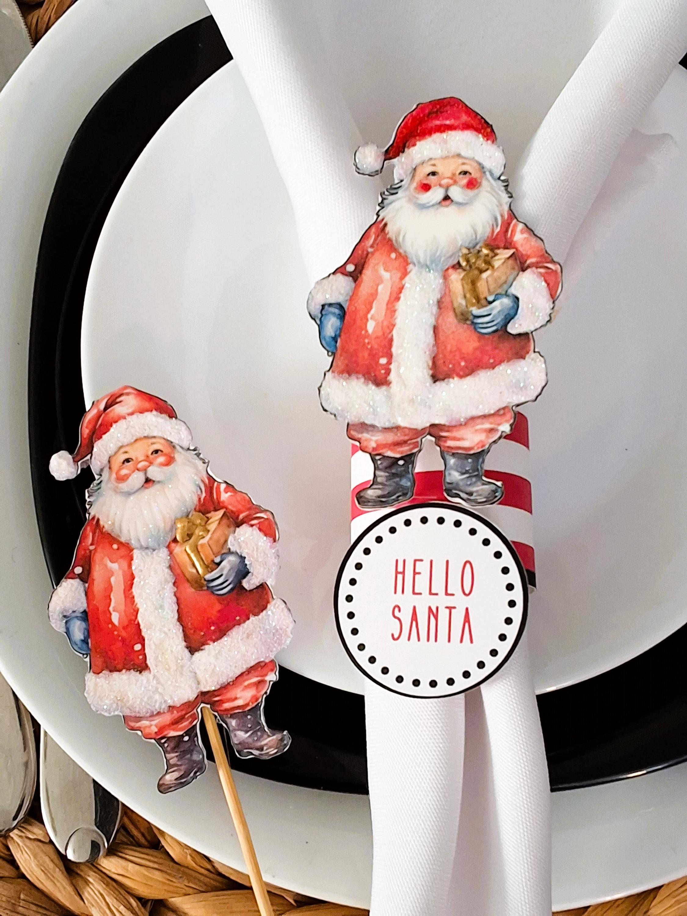 Our watercolor cupcake toppers featuring a glittered vintage Santa Claus are just as cute as can be and so festive!