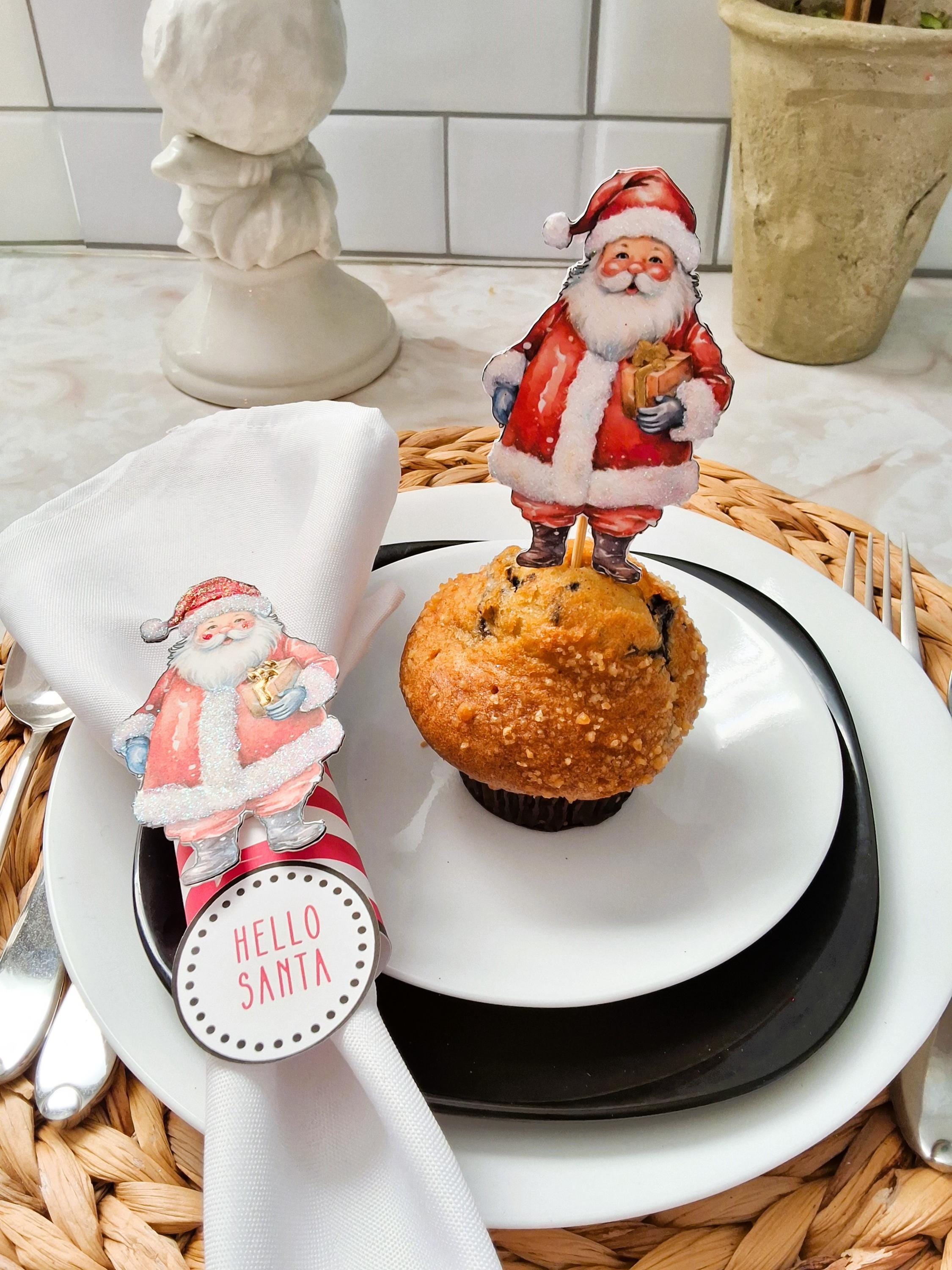 Christmas decor Xmas party decor holiday party cupcake topper party supplies baking supplies cupcake picks Santa Claus