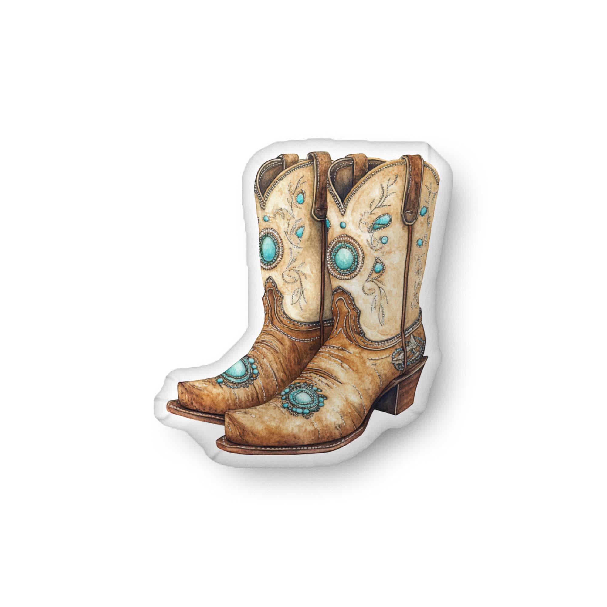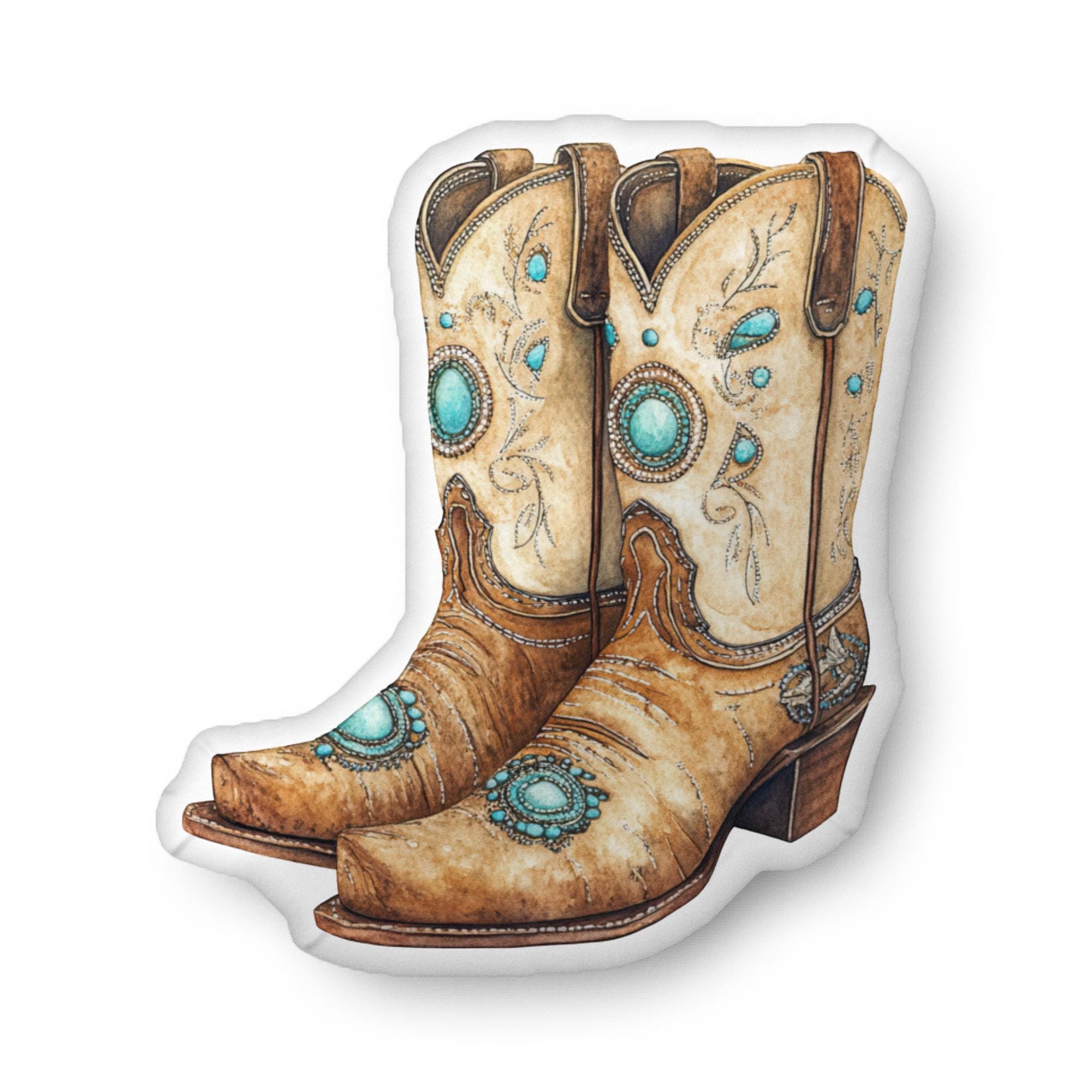 Check out our custom-shaped, printed pillow featuring a great set of cowboy boots with turquoise trim. It's accessories like this that don't just show your great taste but also your personality. This pillow is soft, zipper-free, and is printed on only one side. The perfect gift for you and all those hard-to-buy-for friends and family members. Available in 3 sizes.