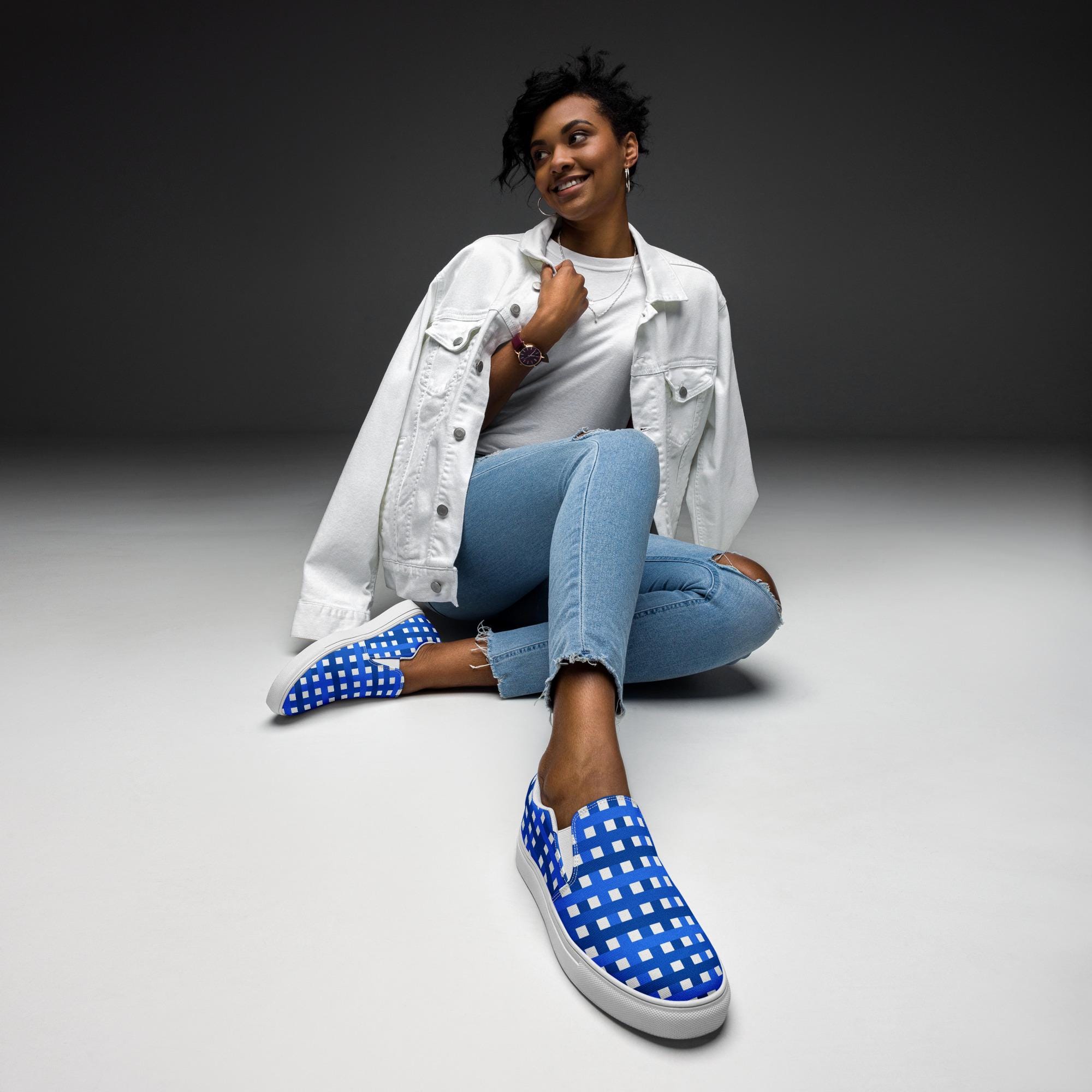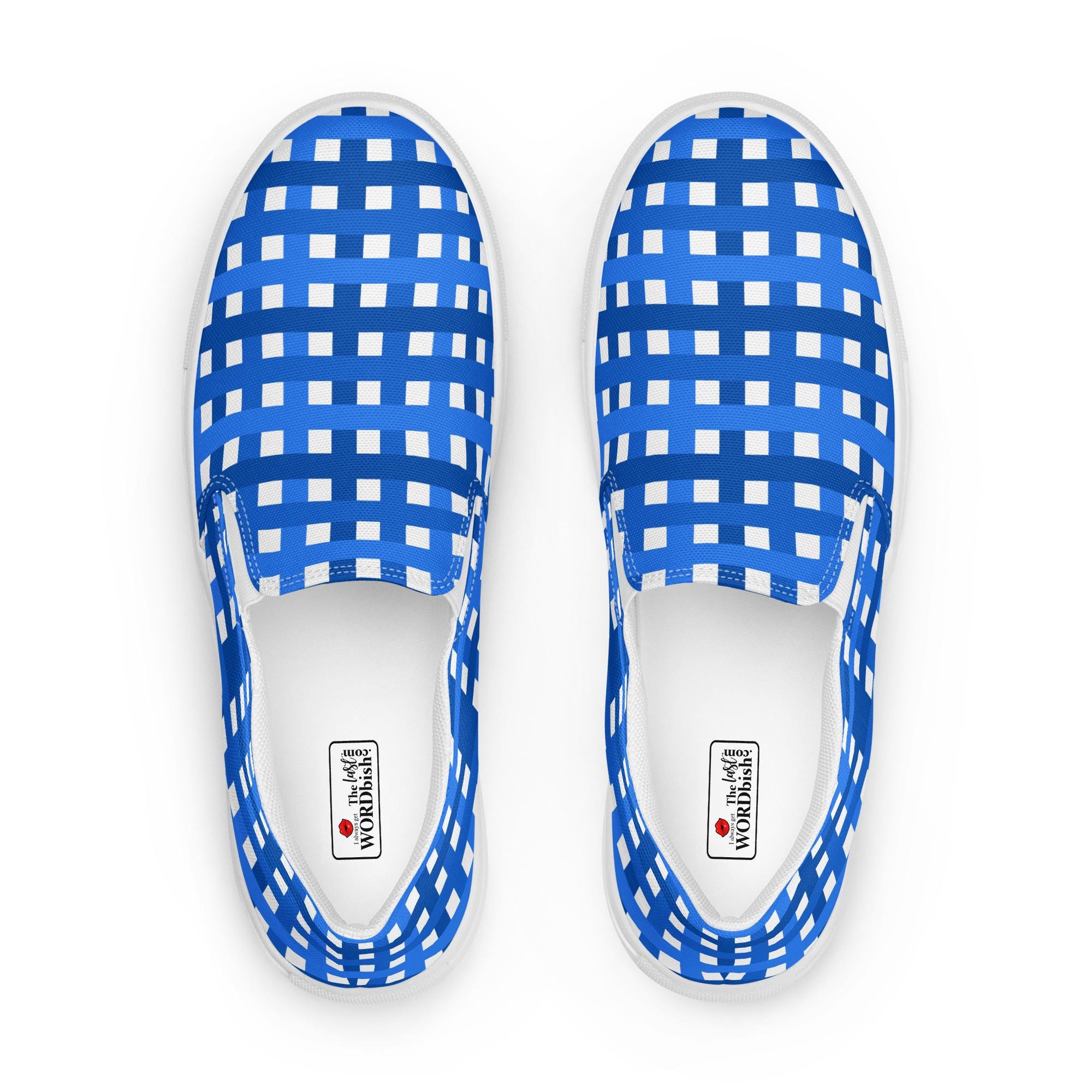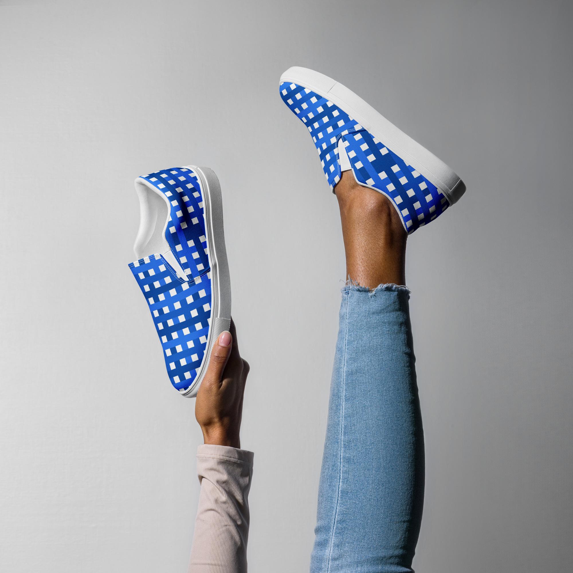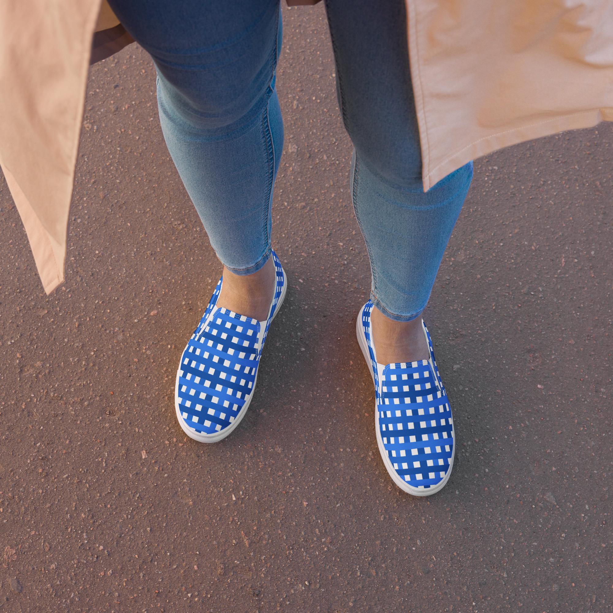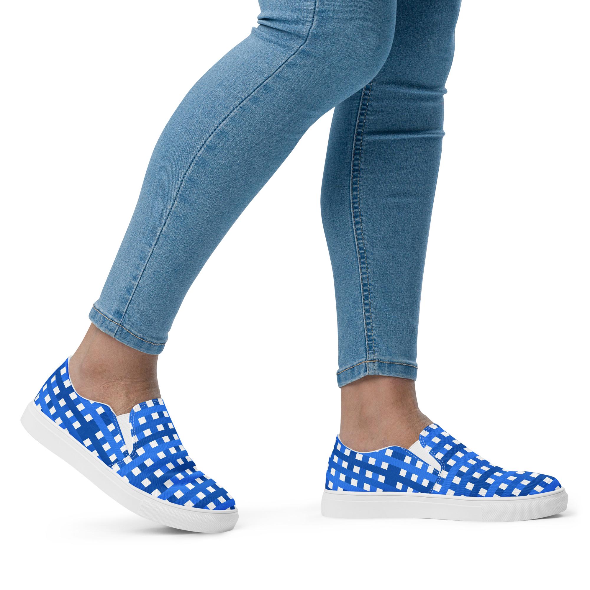 They're not just comfortable and easy to wear, but our Women’s Slip-On Canvas Shoes with blue and white plaid print are stylish and the ideal piece for completing an outfit. We think you're going to love them and all those compliments you're sure to get. They're custom printed and made to order, so you're not going to see them everywhere you go!