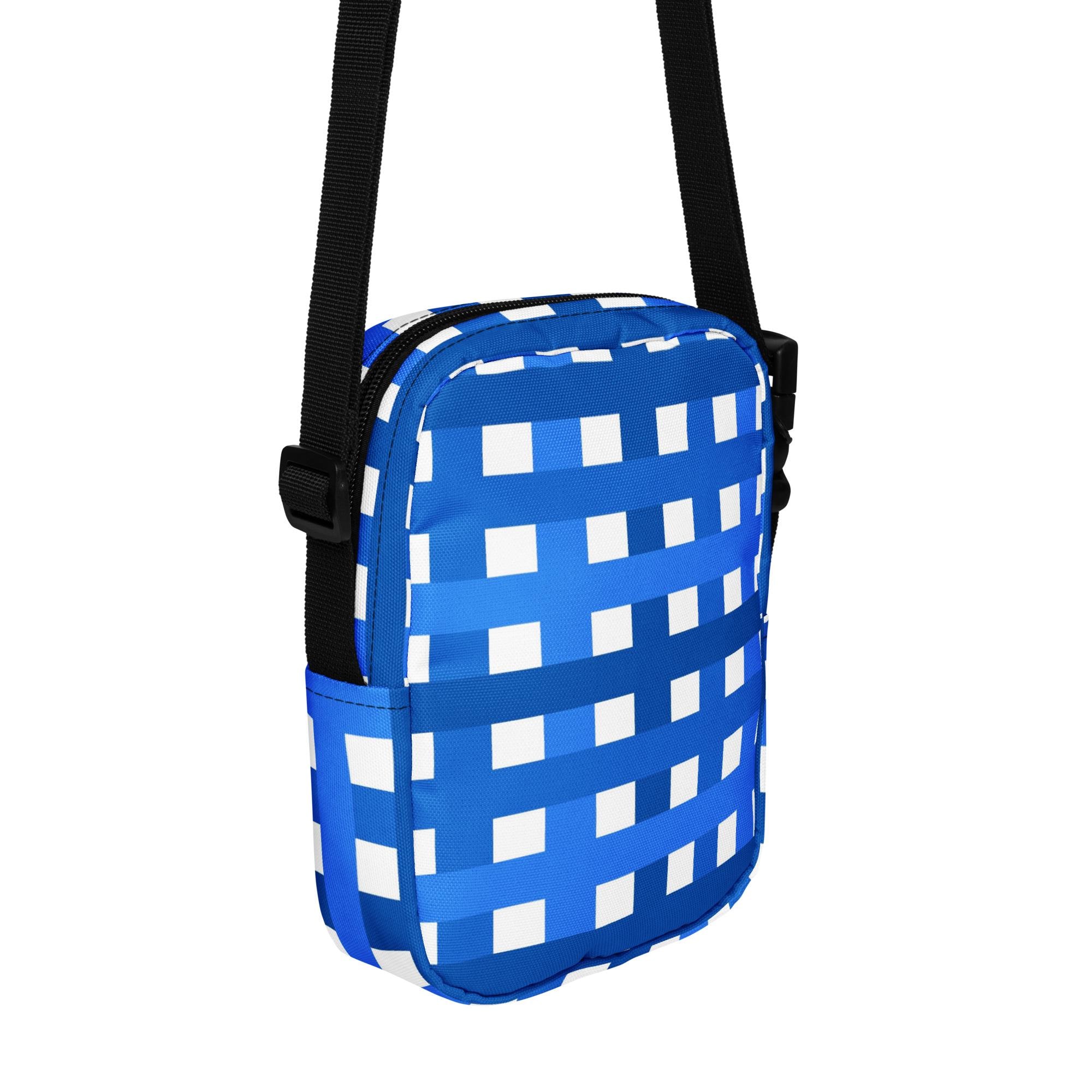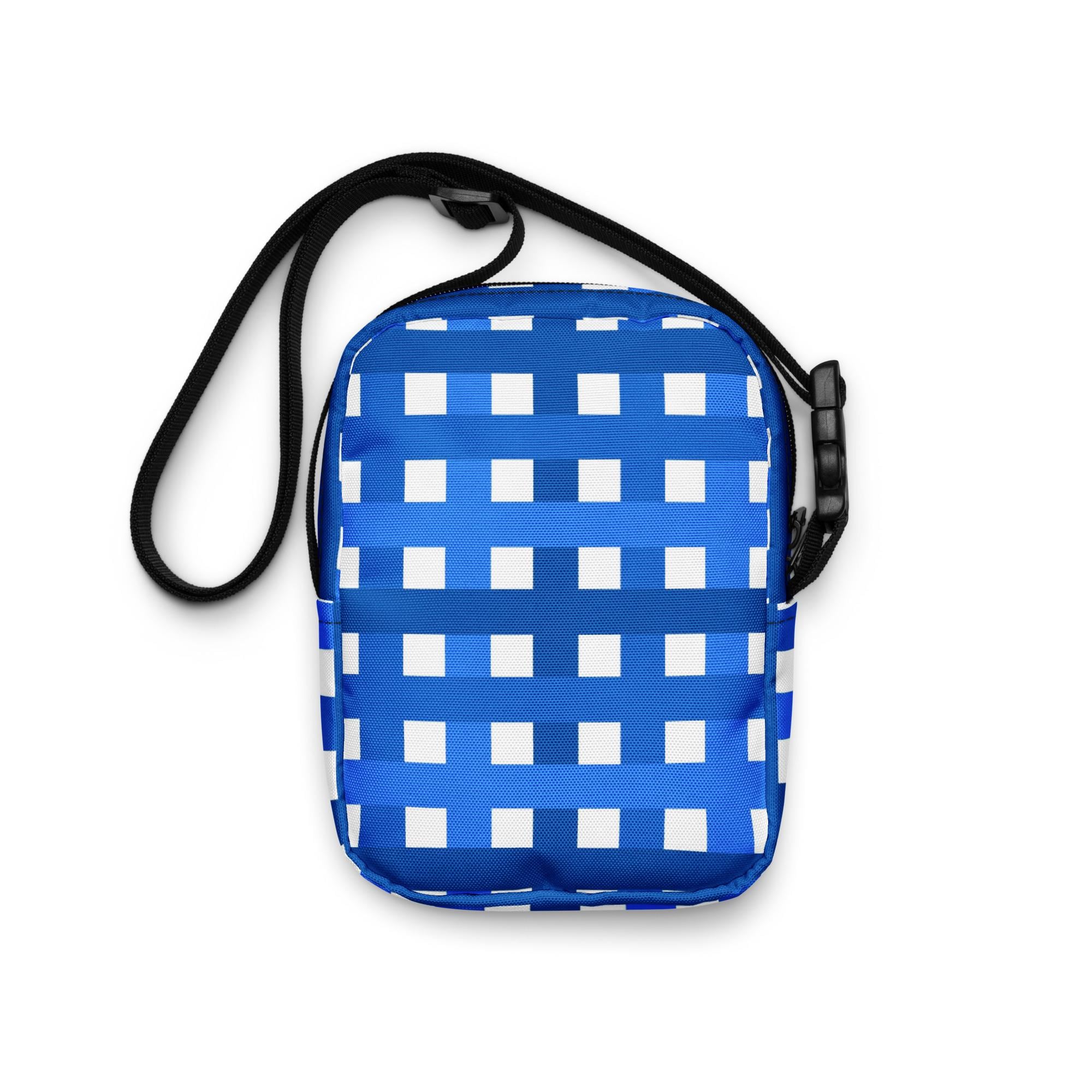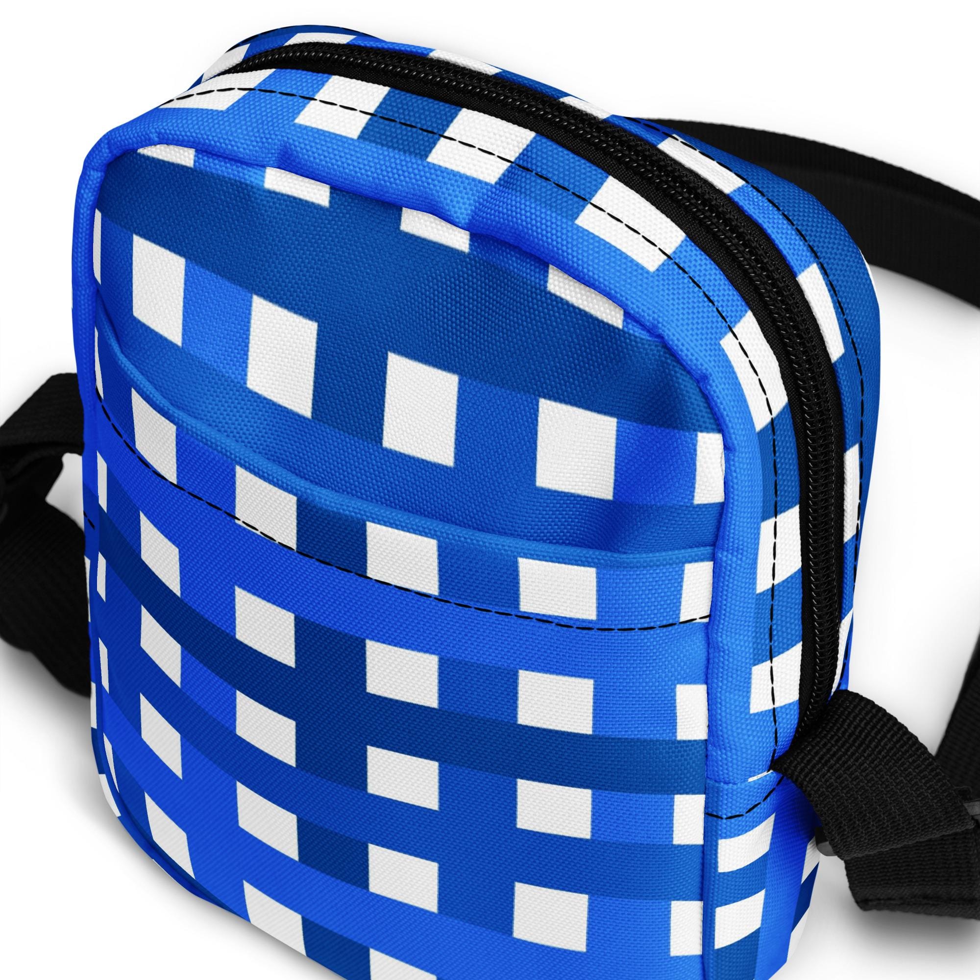 Blue and White Plaid Utility Crossbody Bag, Unisex
