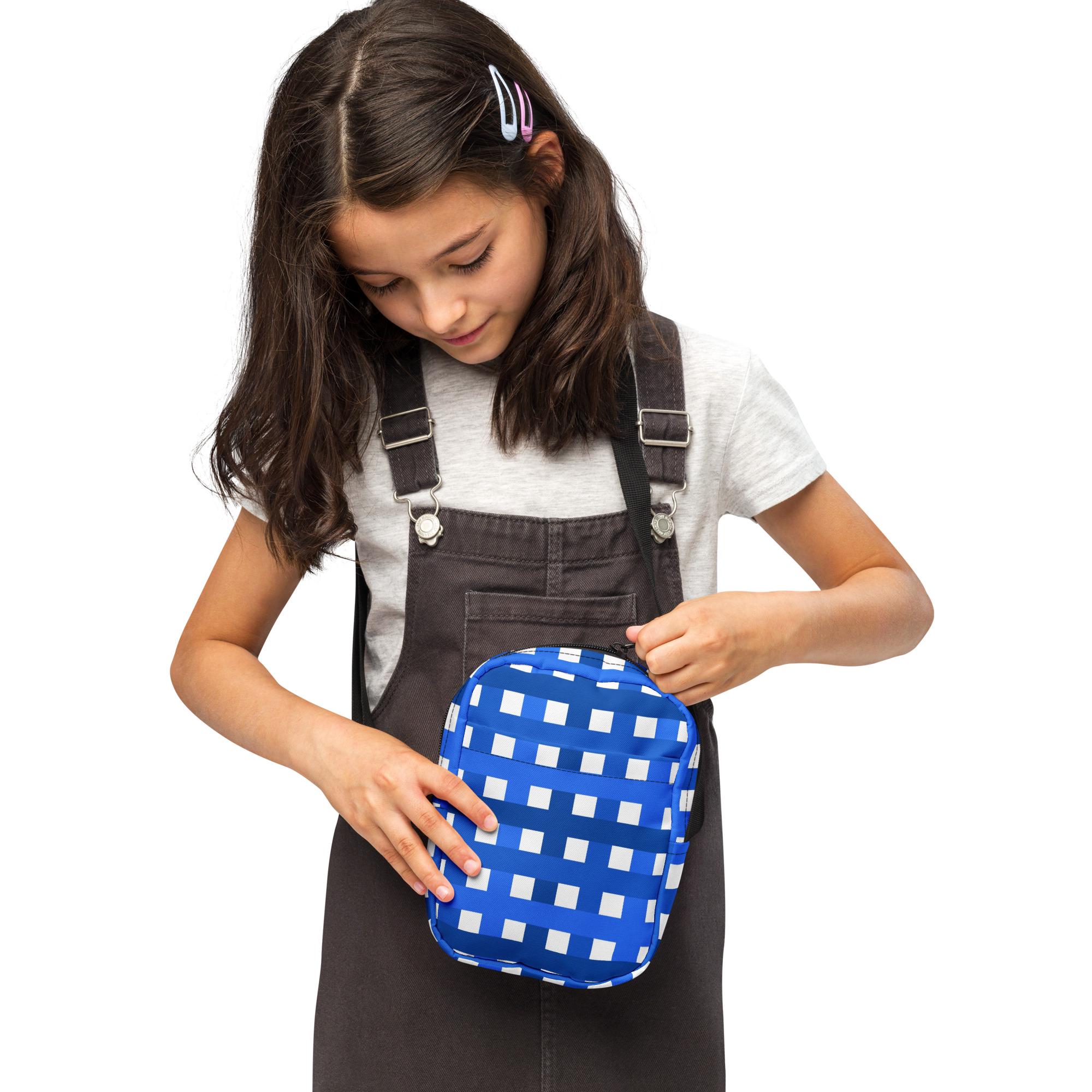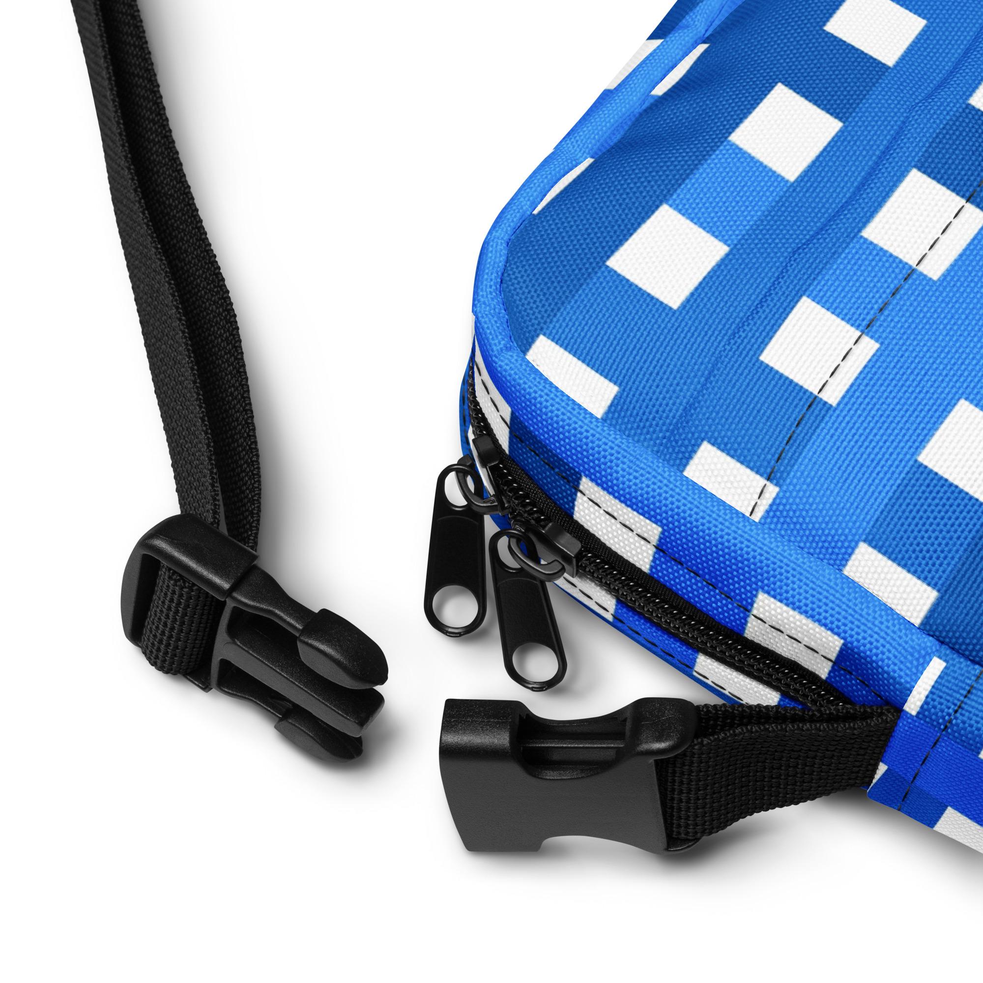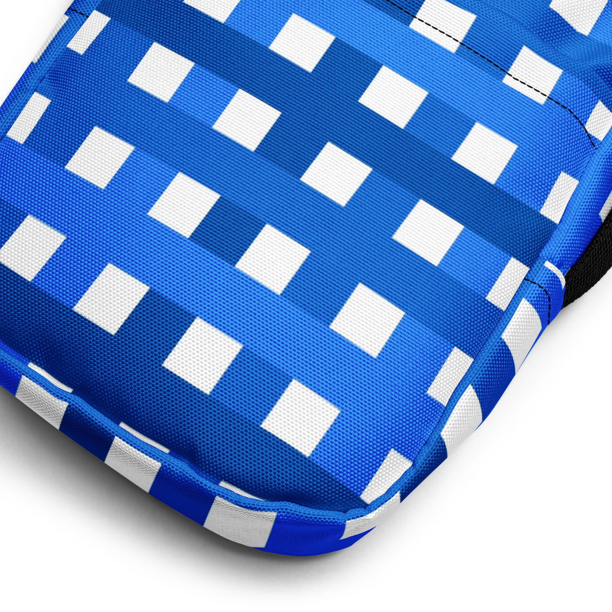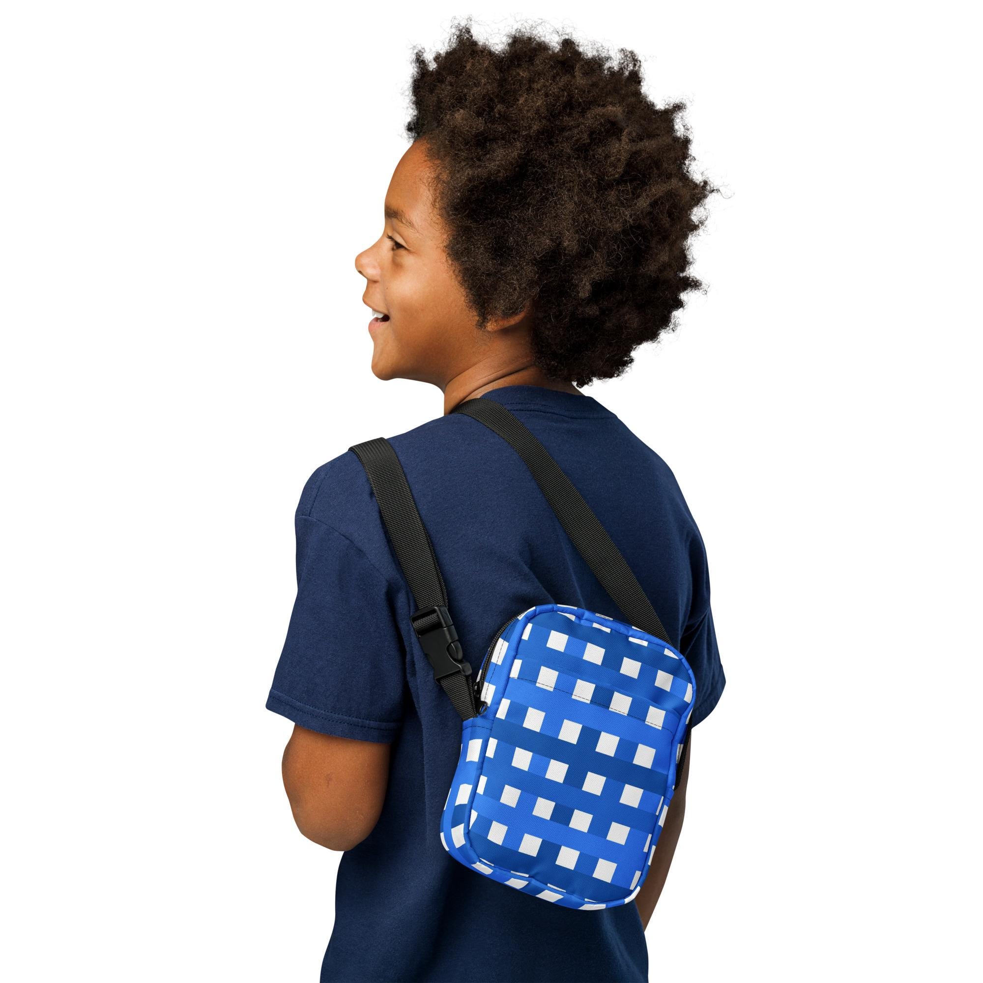 Blue and White Plaid Utility Crossbody Bag, Unisex