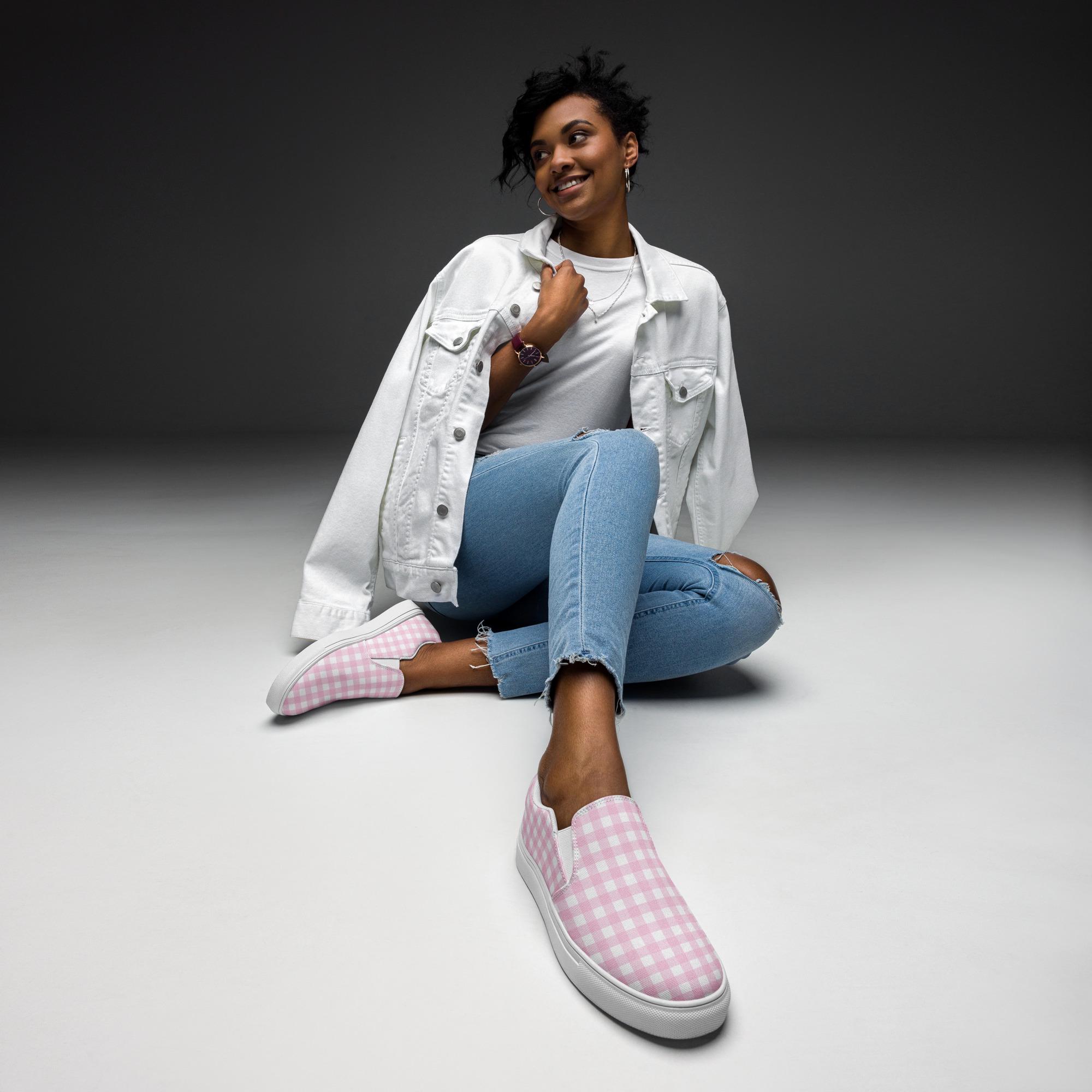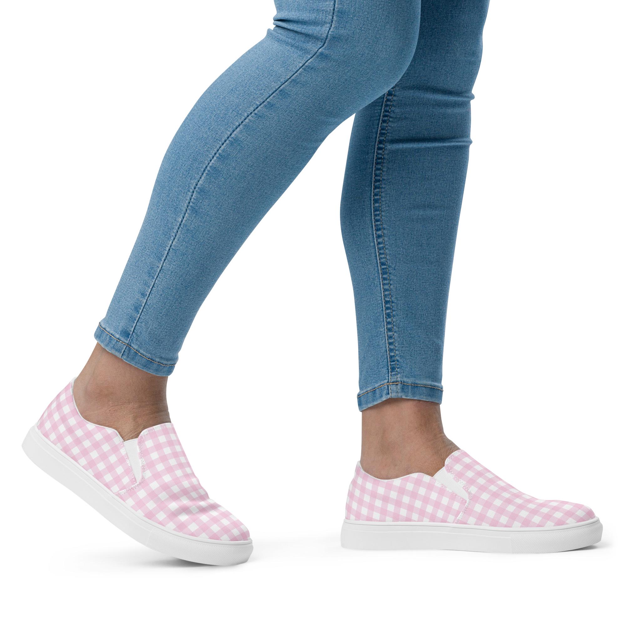 While these were made for comfort and ease of wear, our Women’s Slip-On Canvas Shoes with a soft pink checkered pattern are stylish and the ideal piece for completing an outfit. Think how cute they'll look with jeans, shorts, a skirt or leggings. Perfect for the gal who loves pink!