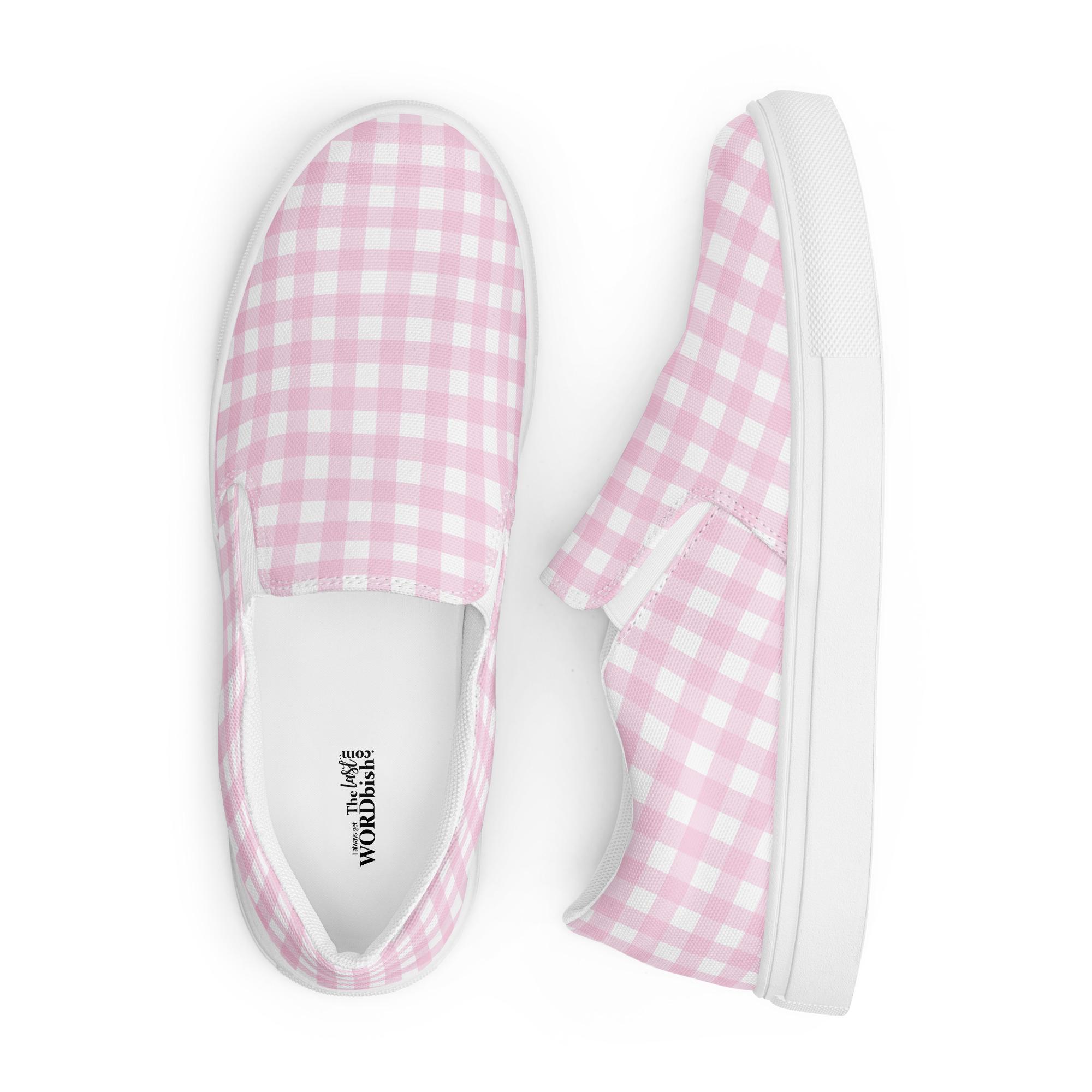 Pink Checked Women’s Slip-on Canvas Shoes